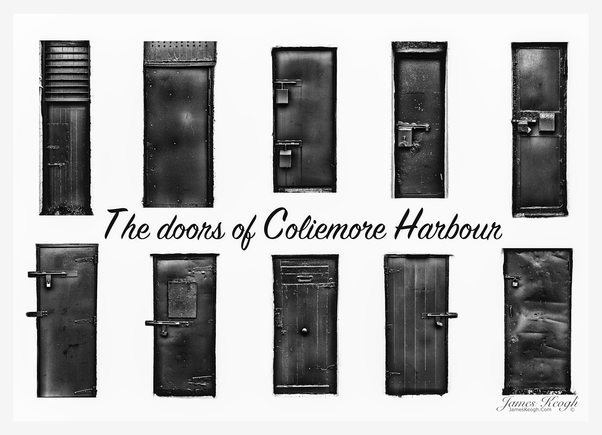 I took these shots of the doors around Coliemore Harbour exactly 2 months ago, but it only came to me last night what to actually do with them