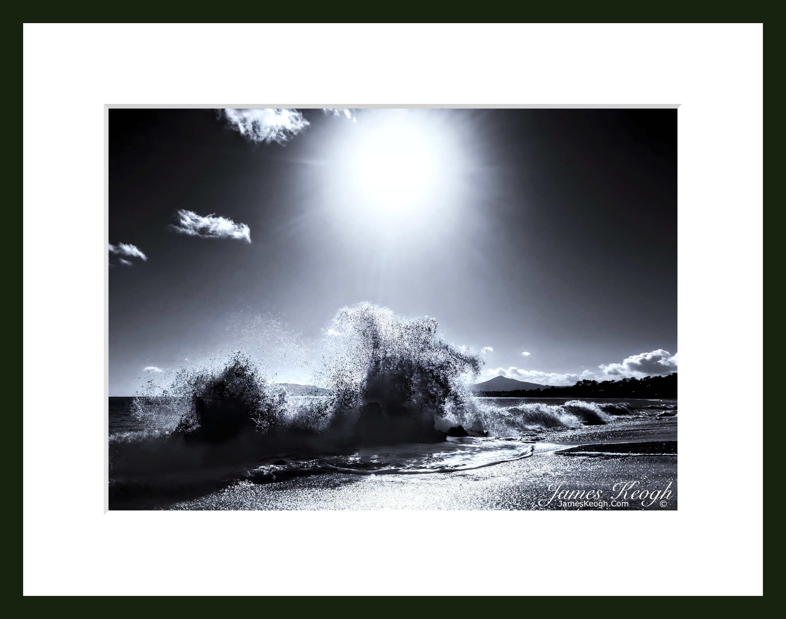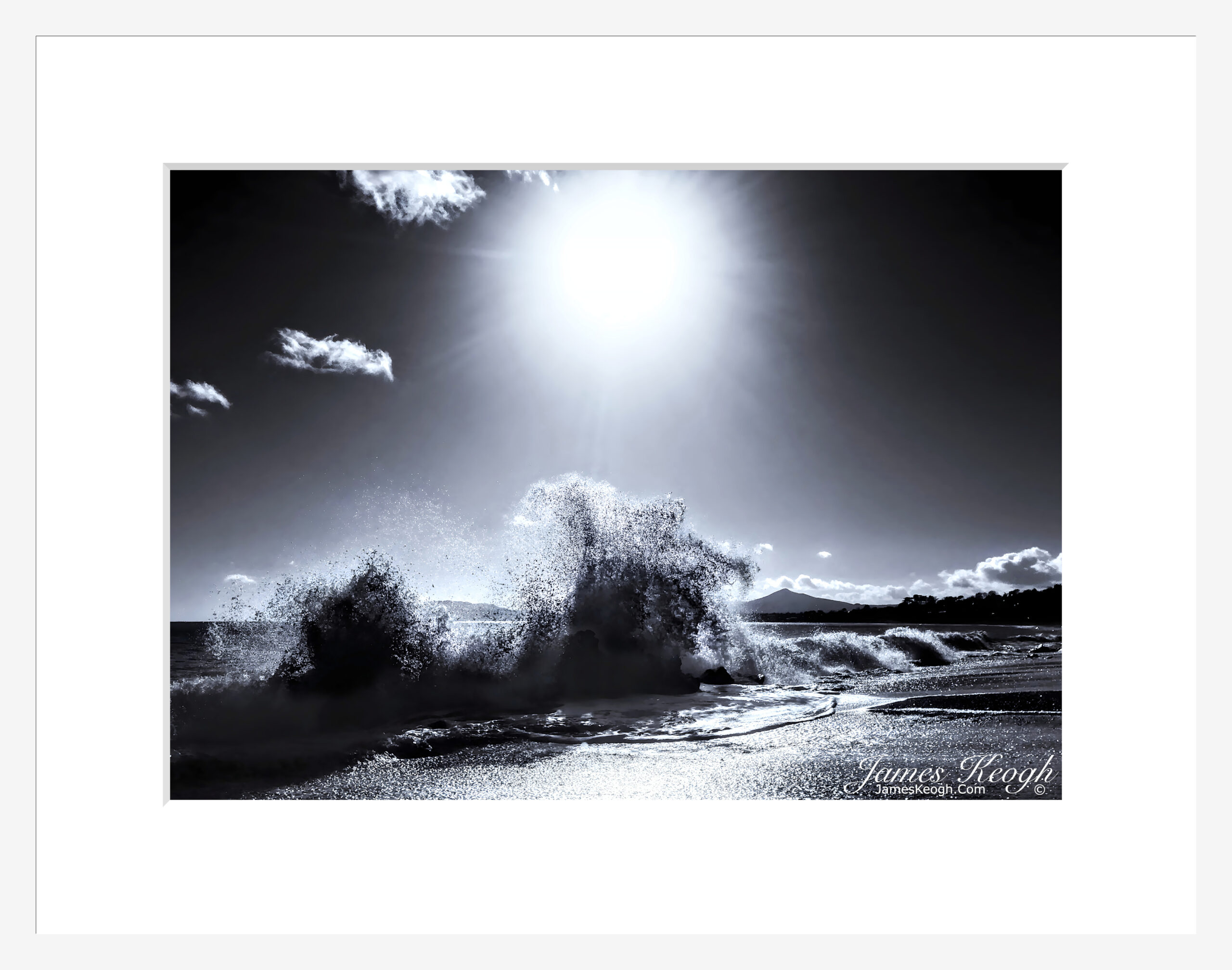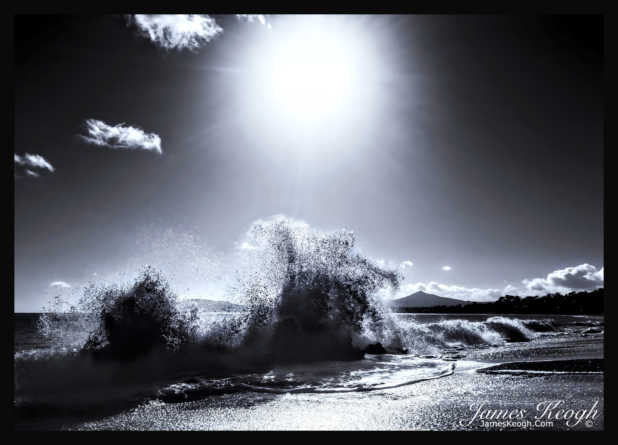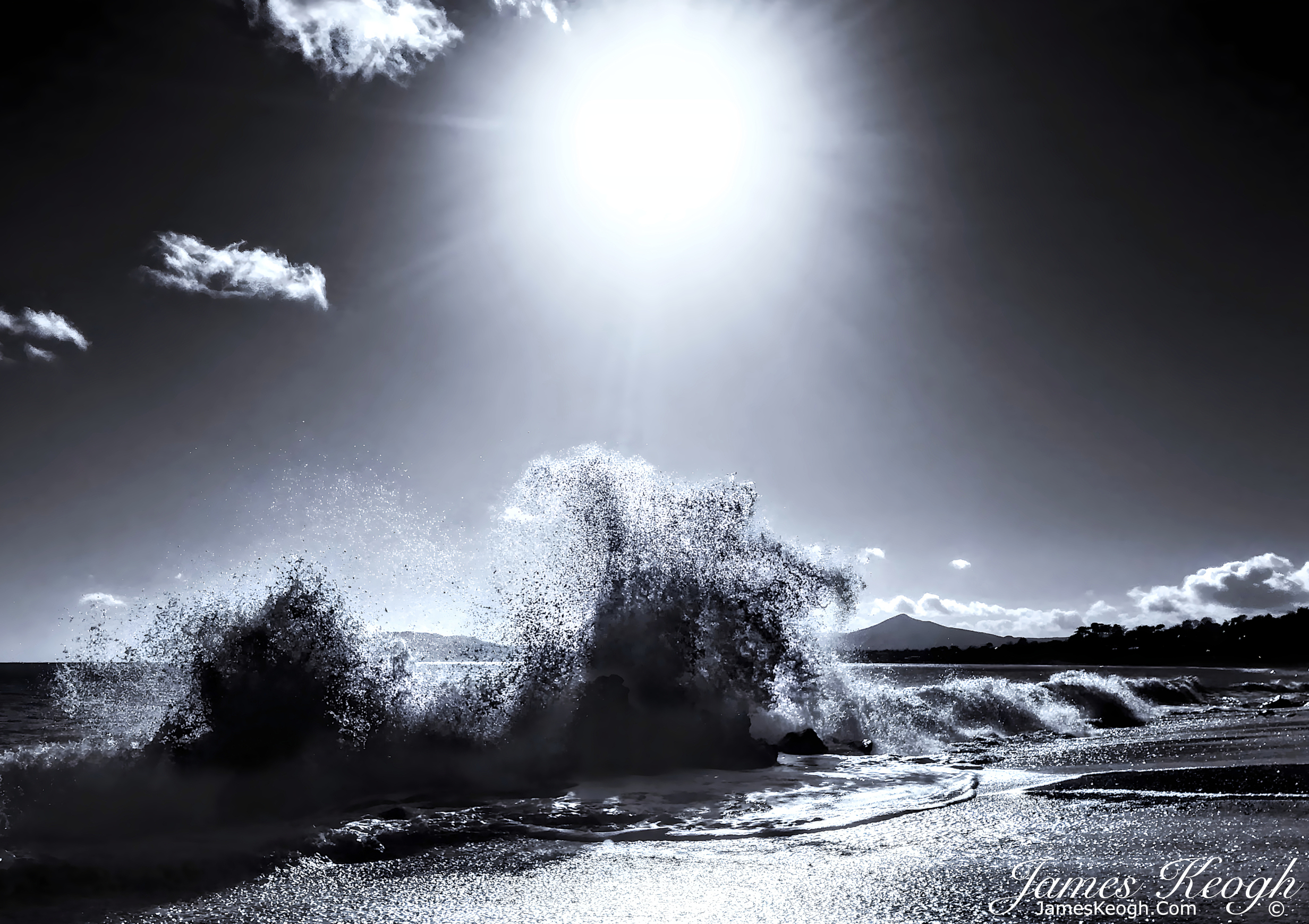 An exhilarating sunny spray day on Whiterock beach, Vico road, Dalkey, looking towards Sugarloafs.