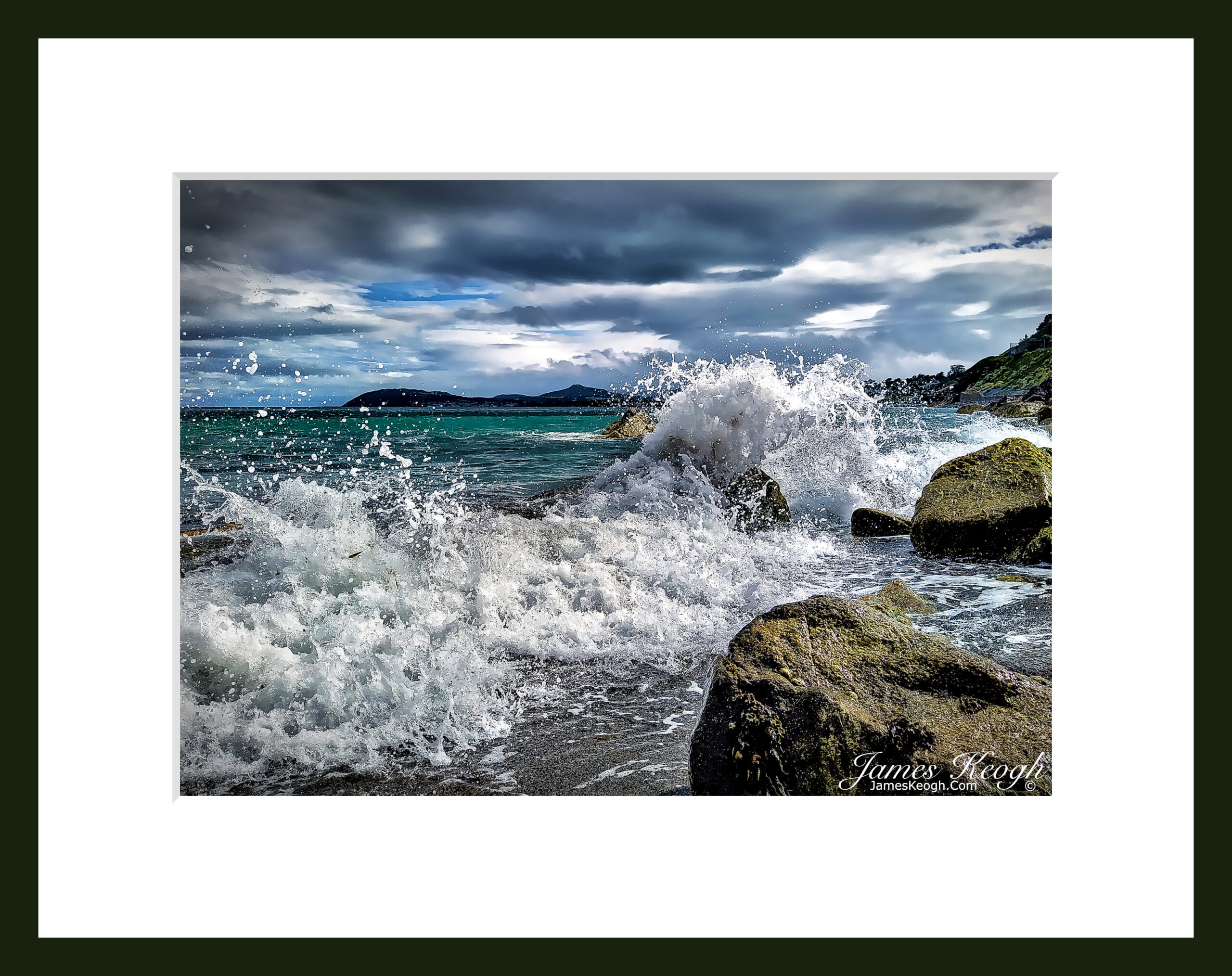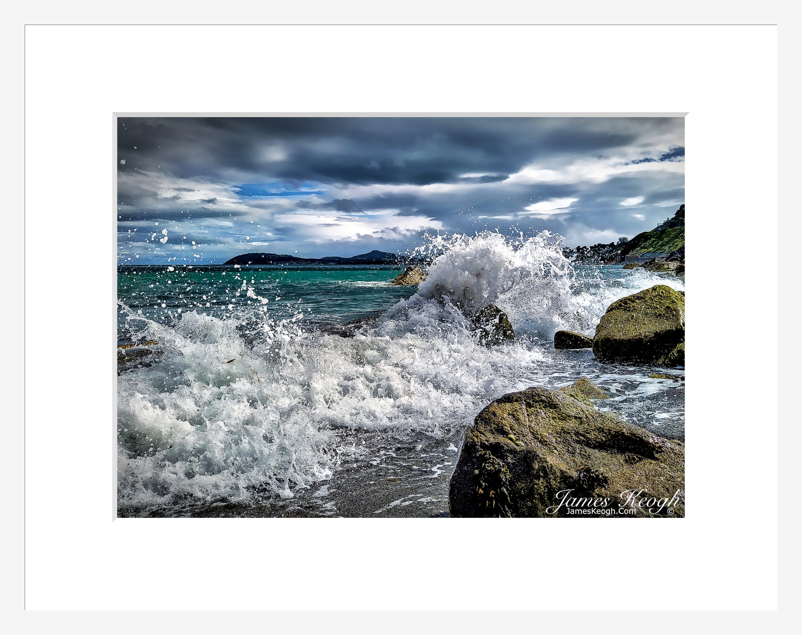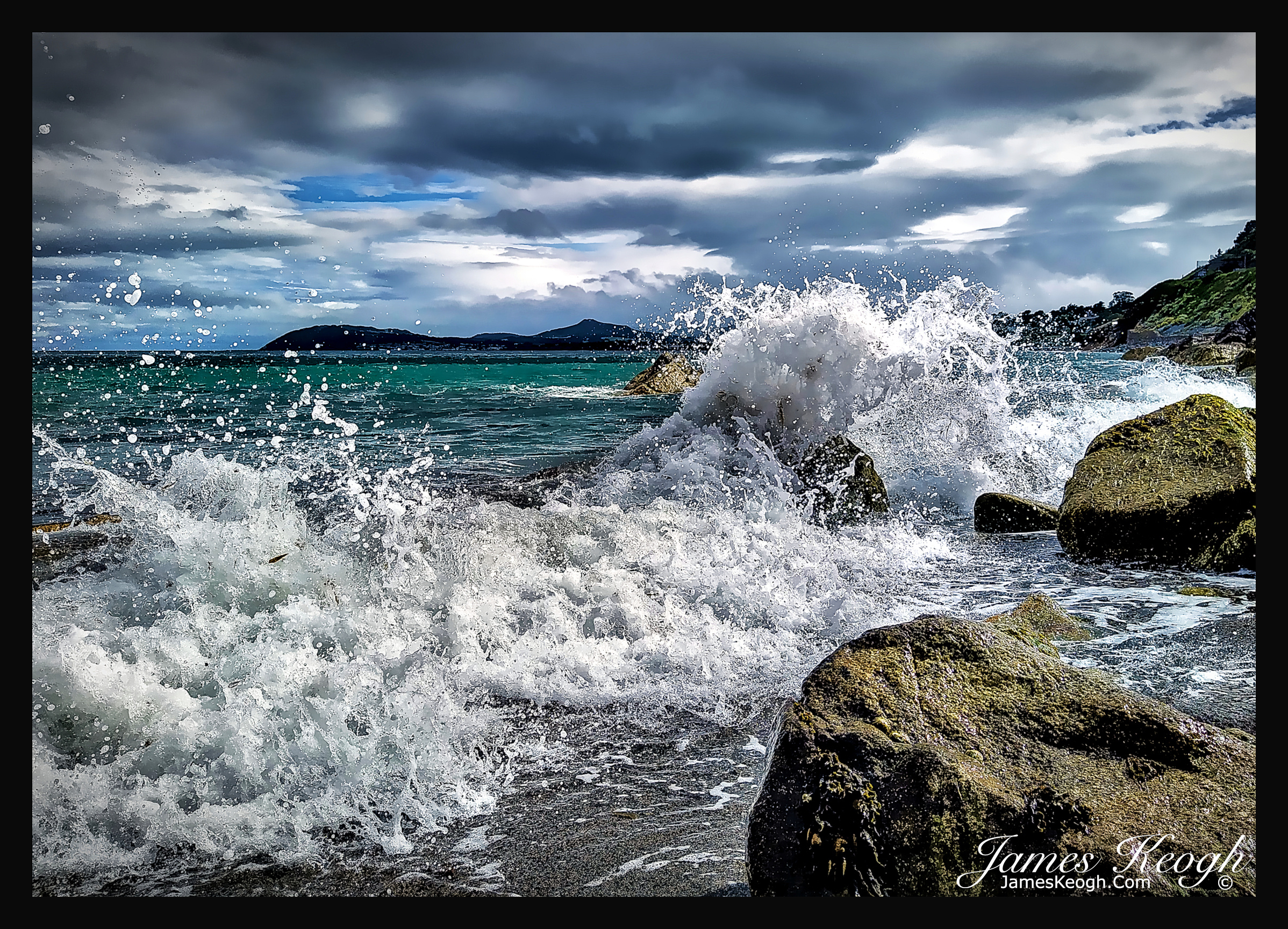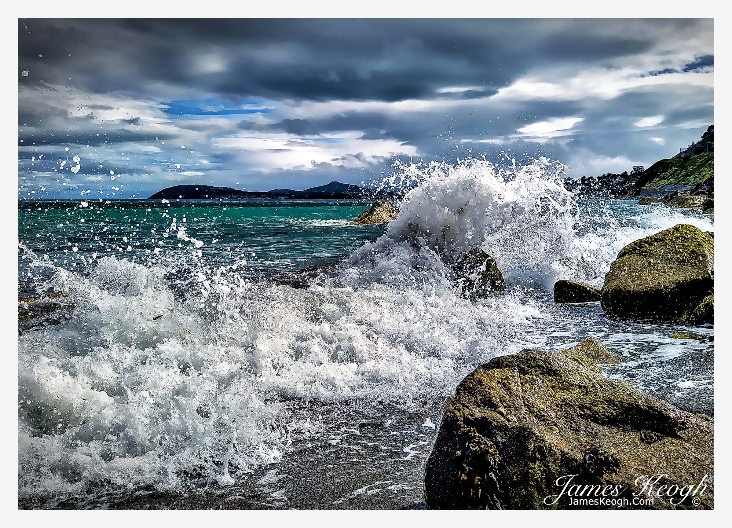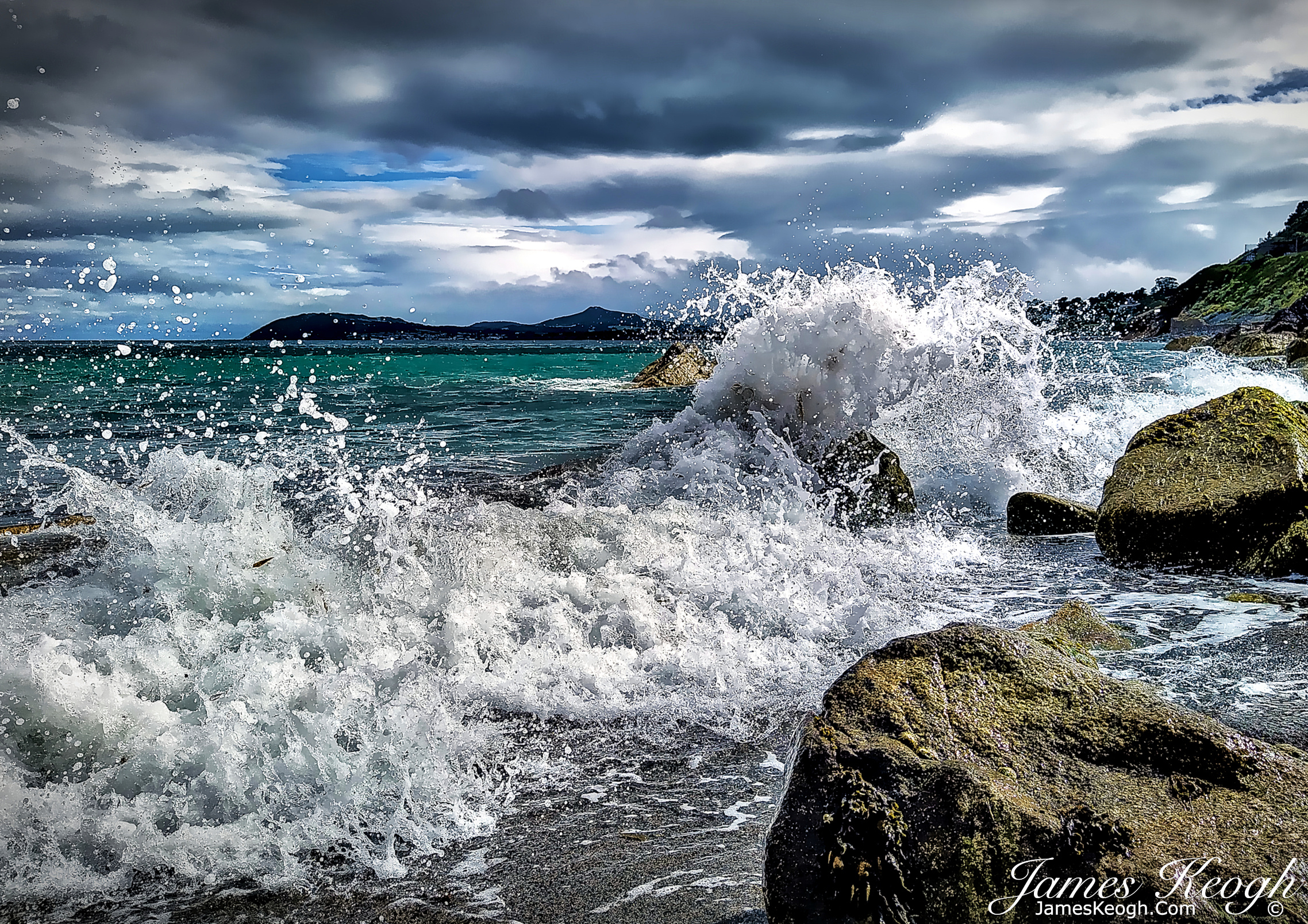 My default setting is to think in tones and shades, hence my proliferation of black & white output. However, when presented with vibrant or unusual colours, such as this wonderful jade green sea with plenty of splashing, it would be wrong to not make some humble attempt to capture and share it with those unlucky enough not to to bear witness to such beauty. On Whiterock beach, Vico road, Dalkey.