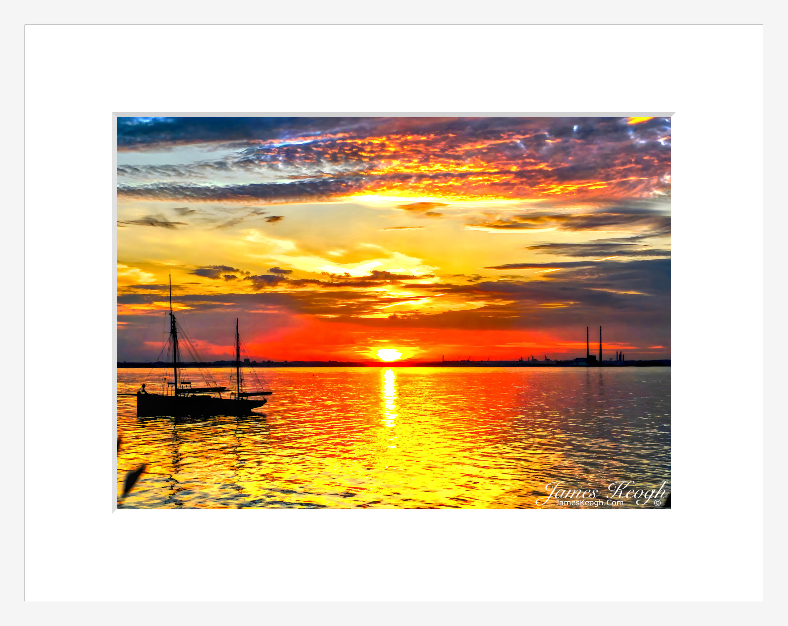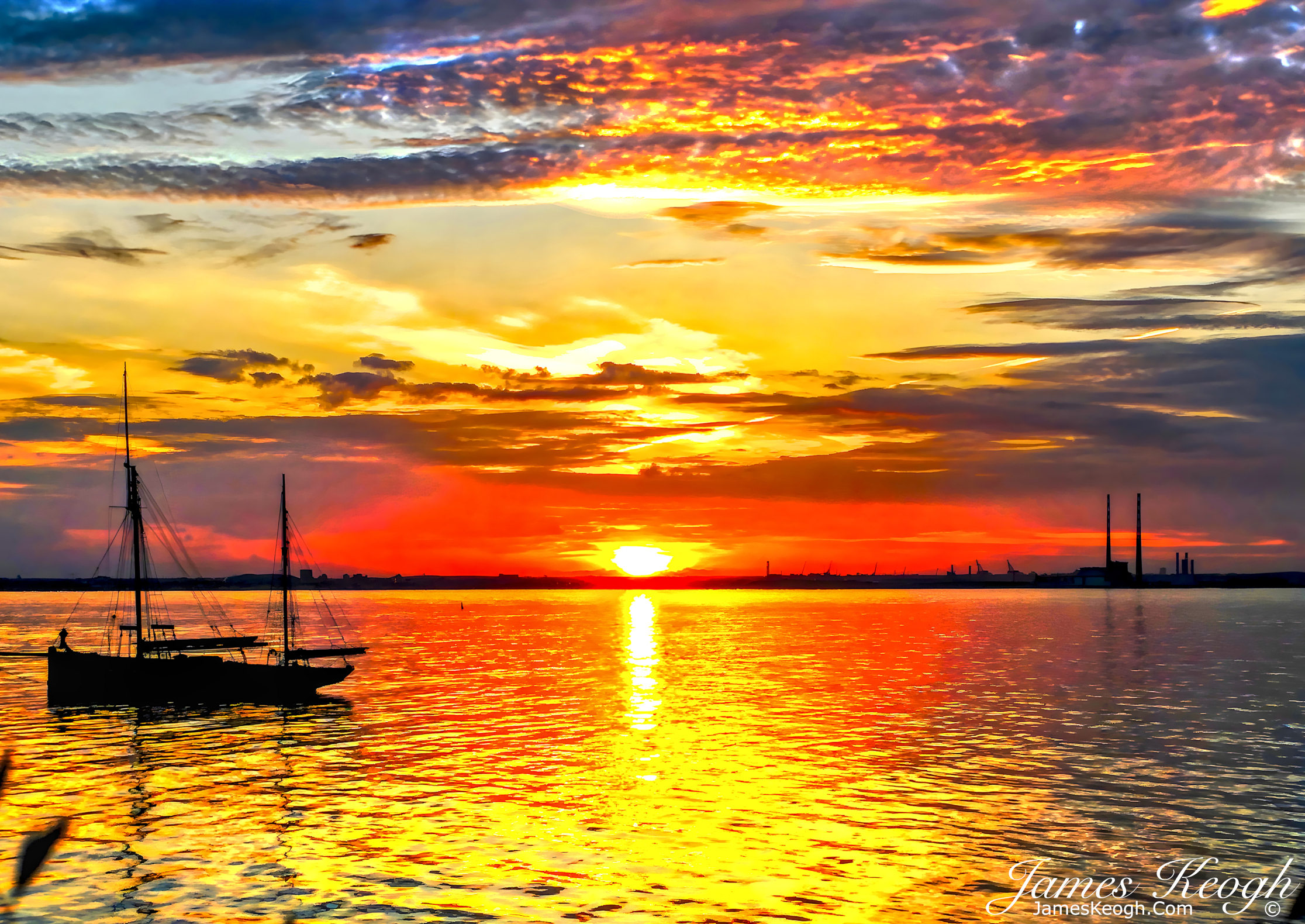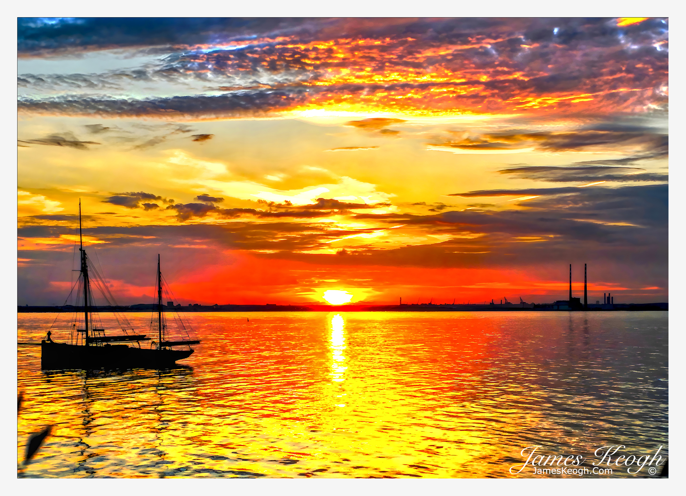 A lovely sunset over Dublin bay, taken from the west pier in Dun Laoghaire – one of my favourite evening walks with Ruadh. The symmetry of the the two masts with the chimneys at Poolbeg appealed to me.